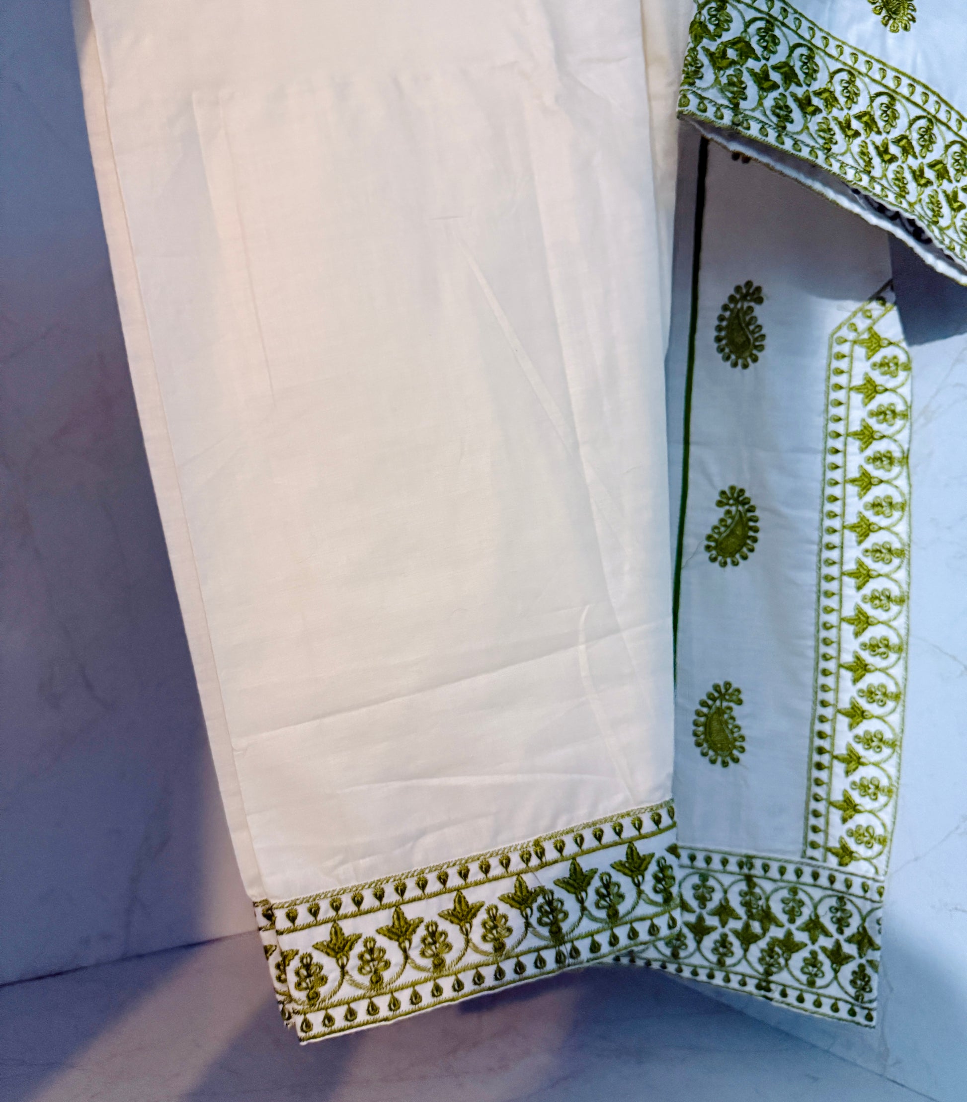 Prothoma Olive Glow – Embroidered Pakistani style Bangladeshi Suti Kurti